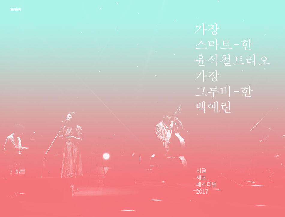 이 조합은 정말 찰지다. 이미 몇번의 검증이 이었고 이번에도 역시였다. 윤석철 트리오 만큼 스마트하게 모던 째지할수 있을까? 백예린 만큼 그루비할 수 있을까? 아주 착착 감긴다.