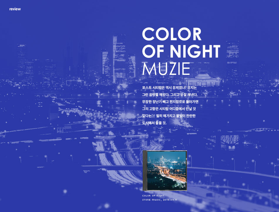 포스트 시티팝은 역시 뮤지였나? 뮤지는 그런 음악을 해왔다. 그리고 곧잘 해낸다. 무장한 장난기 빼고 진지함으로 돌아가면 그의 고향은 시티팝 어디쯤에서 만날 것 같다는… 필히 해가지고 불빛이 찬란한 도시에서 들을 것.