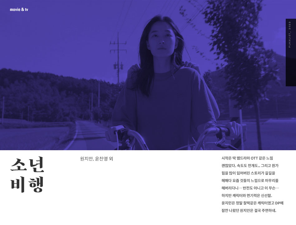 시작은 딱 웹드라마 OTT 같은 느낌 괜찮았다. 속도도 전개도.. 그리고 뭔가 힘을 많이 잃어버린 스토리가 갈길을 헤매다 요즘 것들의 느낌으로 마무리를 해버리다니… 반전도 아니고 이 무슨… 하지만 캐릭터와 연기력은 신선함. 윤지민은 정말 찰떡같은 캐릭터였고 DP에 잠깐 나왔던 원지안은 결국 주연하네.
