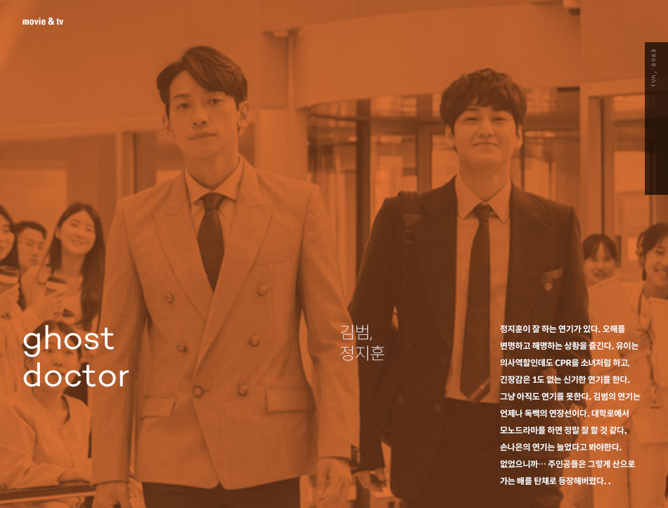 정지훈이 잘 하는 연기가 있다. 오해를 변명하고 해명하는 상황을 즐긴다. 유이는 의사역할인데도 CPR을 소녀처럼 하고, 긴장감은 1도 없는 신기한 연기를 한다. 그냥 아직도 연기를 못 한다. 김범의 연기는 언제나 독백의 연장선이다. 대학로에서 모노드라마를 하면 정말 잘 할 것 같다. 손나은의 연기는 늘었다고 봐야한다. 없었으니까… 주인공들은 그렇게 산으로 가는 배를 탄채로 등장해버렸다.