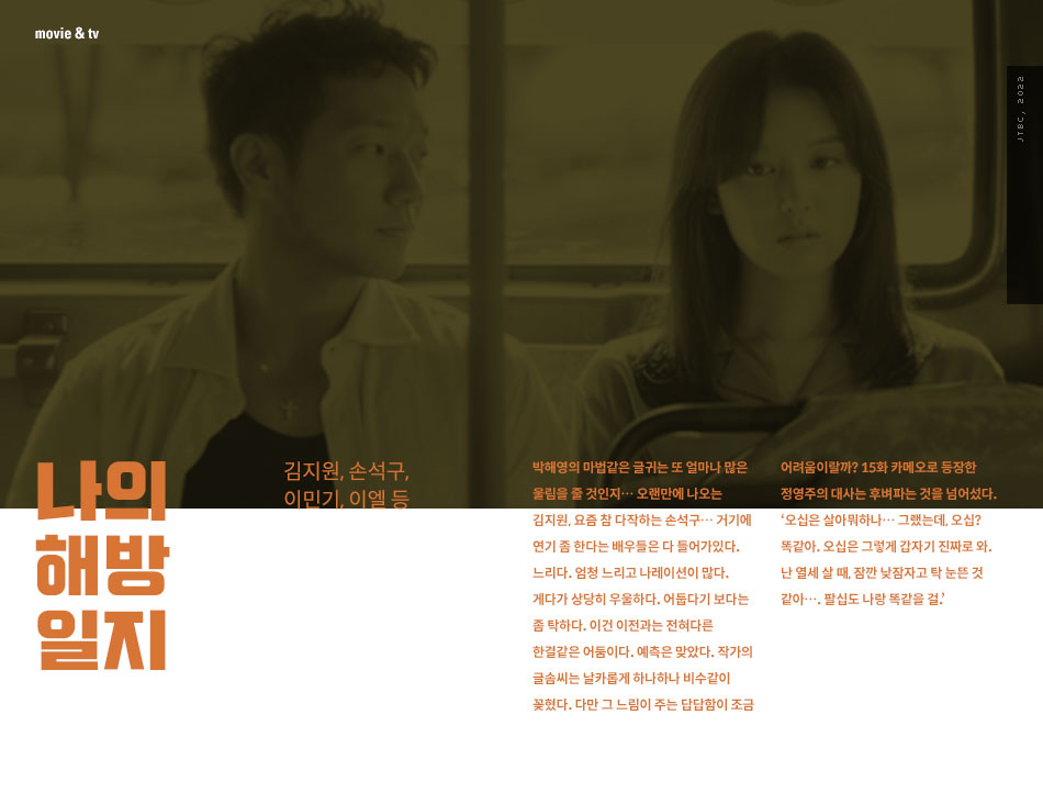 박해영의 마법같은 글귀는 또 얼마나 많은 울림을 줄 것인지… 오랜만에 나오는 김지원, 요즘 참 다작하는 손석구… 거기에 연기 좀 한다는 배우들은 다 들어가있다. 느리다. 엄청 느리고 나레이션이 많다. 게다가 상당히 우울하다. 어둡다기 보다는 좀 탁하다. 이건 이전과는 전혀다른 한결같은 어둠이다. 예측은 맞았다. 작가의 글솜씨는 날카롭게 하나하나 비수같이 꽂혔다. 다만 그 느림이 주는 답답함이 조금 어려움이랄까? 15화 카메오로 등장한 정영주의 대사는 후벼파는 것을 넘어섰다. ‘오십은 살아뭐하나… 그랬는데, 오십? 똑같아. 오십은 그렇게 갑자기 진짜로 와. 난 열세 살 때, 잠깐 낮잠자고 탁 눈뜬 것 같아…. 팔십도 나랑 똑같을 걸.