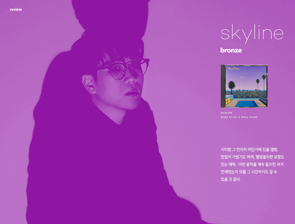 시티팝 그 언저리 어딘가에 있을 앨범. 한없이 가볍기도 하며, 멜랑꼴리한 묘함도 있는 매력. 이런 음악을 계속 들으면 과거 언제였는지 모를 그 시간까지도 갈 수 있을 것 같다.