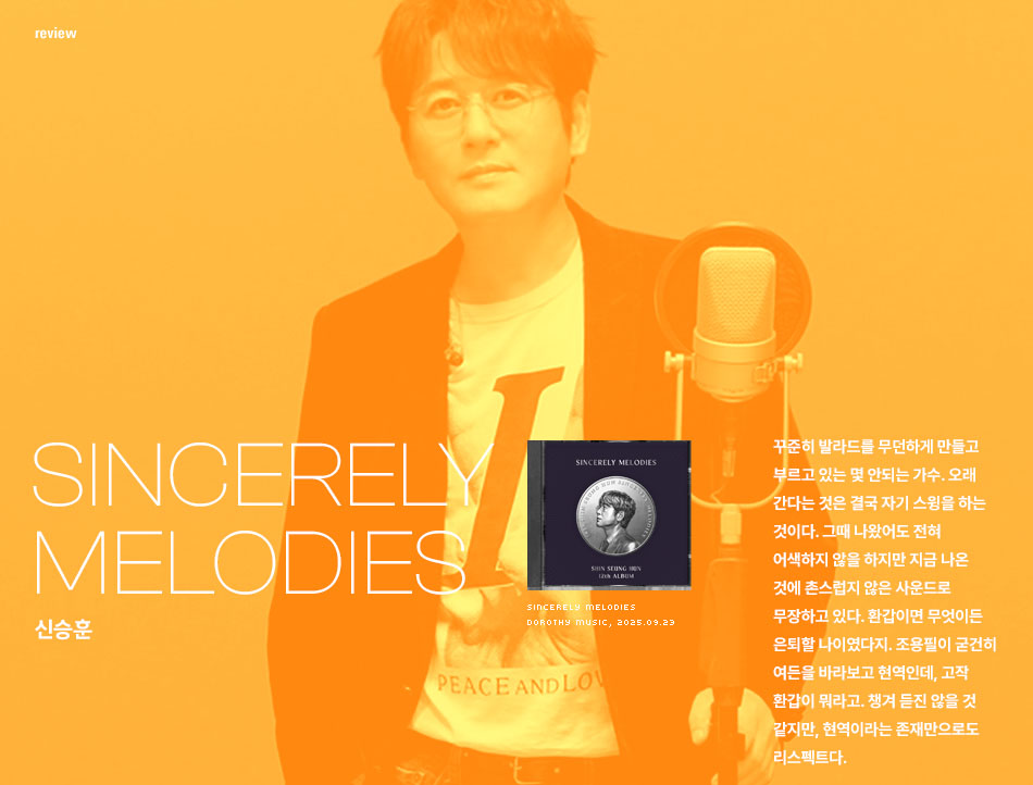 꾸준히 발라드를 무던하게 만들고 부르고 있는 몇 안되는 가수. 오래 간다는 것은 결국 자기 스윙을 하는 것이다. 그때 나왔어도 전혀 어색하지 않을 하지만 지금 나온 것에 촌스럽지 않은 사운드로 무장하고 있다. 환갑이면 무엇이든 은퇴할 나이였다지. 조용필이 굳건히 여든을 바라보고 현역인데, 고작 환갑이 뭐라고. 챙겨 듣진 않을 것 같지만, 현역이라는 존재만으로도 리스펙트다.